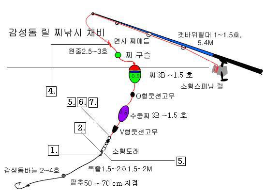 낚싯줄을 감고, 바늘을 갈고, 미끼를 준비하며 ..