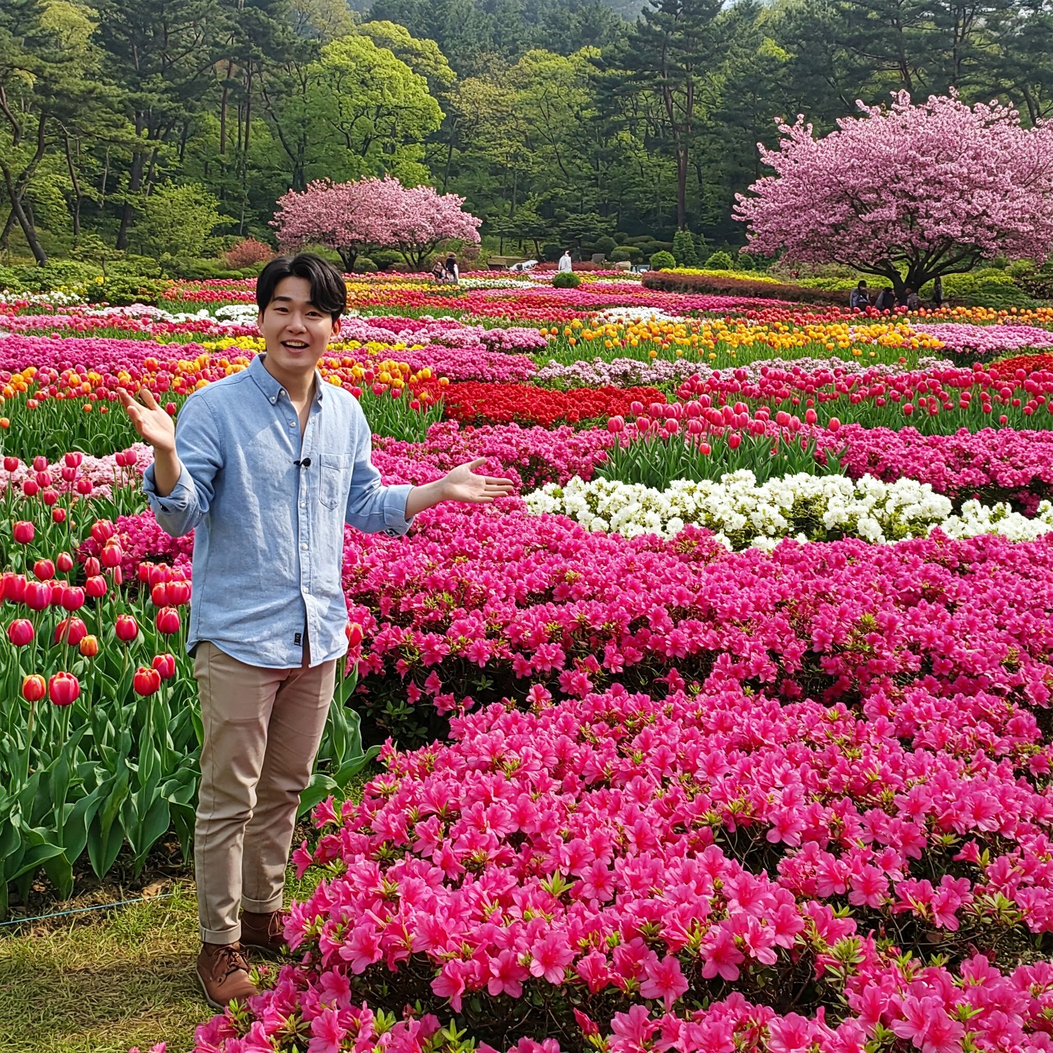 1. 동문 구역: 네덜란드 정원(튤립) → 태국 정원(전통 의상 촬영) → 메타세쿼이아길(벚꽃).